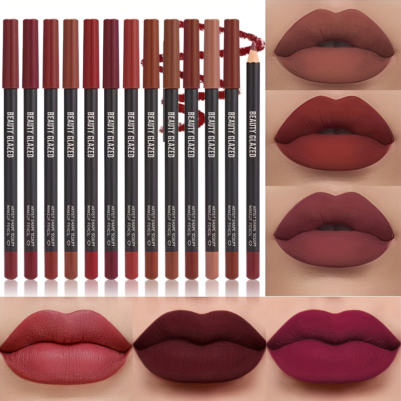 12-Shade Waterproof & High-Pigmented Matte Lip Liner Set - Long-Lasting Creamy Gel Pencil Lip Makeup with Sharp Tip for Precise Application, All Light Beige Tones (Pink, Brown, Red, Purple, Black, Nude, Burgundy, Deep Reds, M