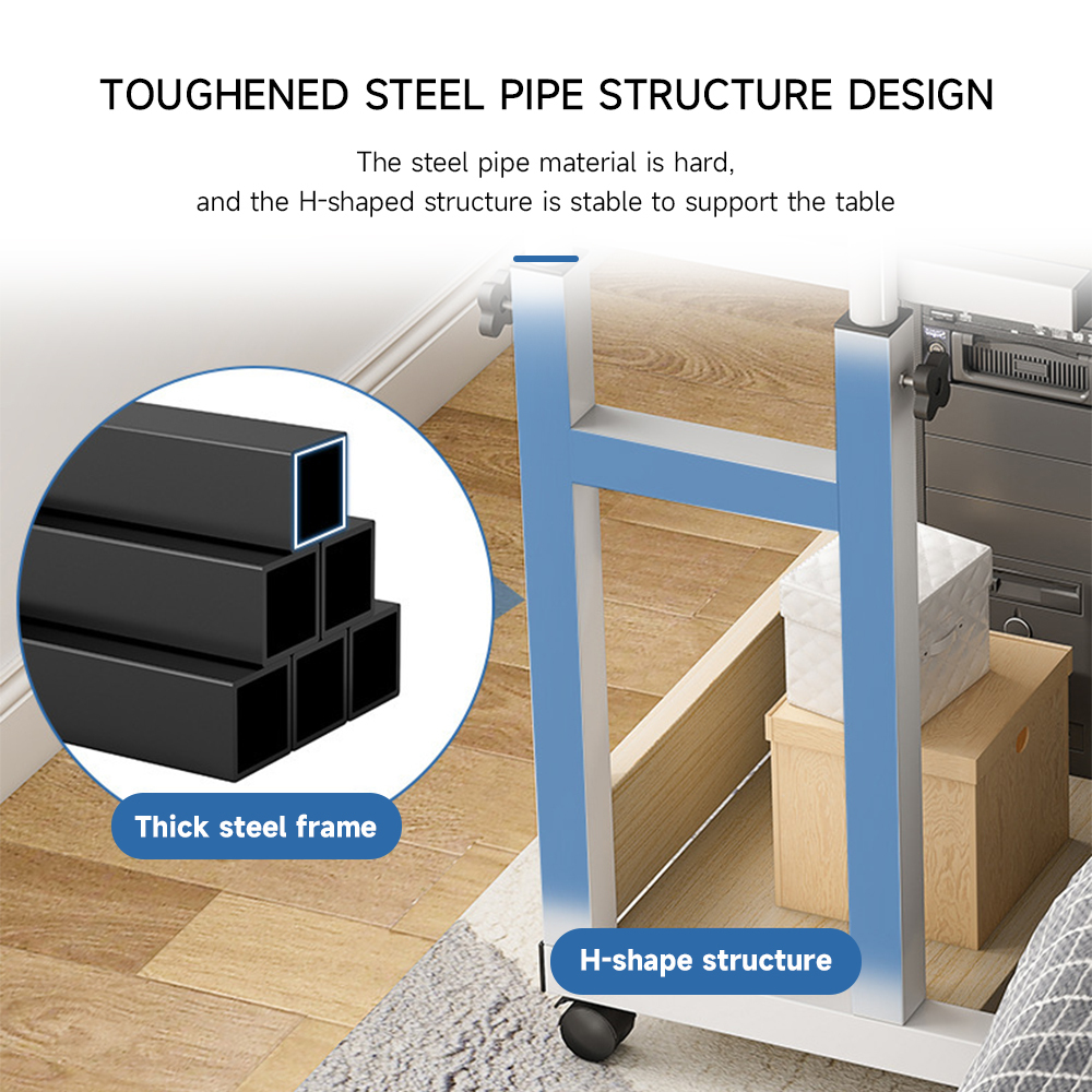 This versatile adjustable-height bedside table combines robust construction with smart mobility.The lockable wheels and height-adjustable design make it perfect for bedrooms, living rooms, or offices.