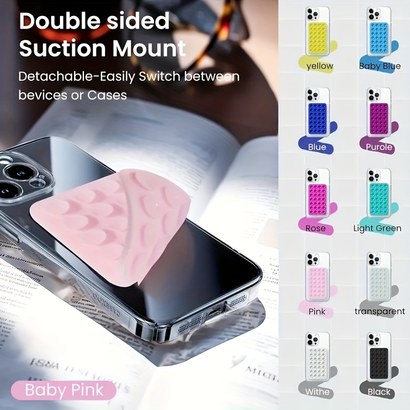 1Pack, Double-sided Silicone Mobile Phone Suction Cup, Car Holder for Mobile Phones, Strong Adhesive Bracket, Suitable for Kitchen, Bathroom and Makeup Mirror, iPhone and Android, Suitable for Selfie and Video Recording, Gift