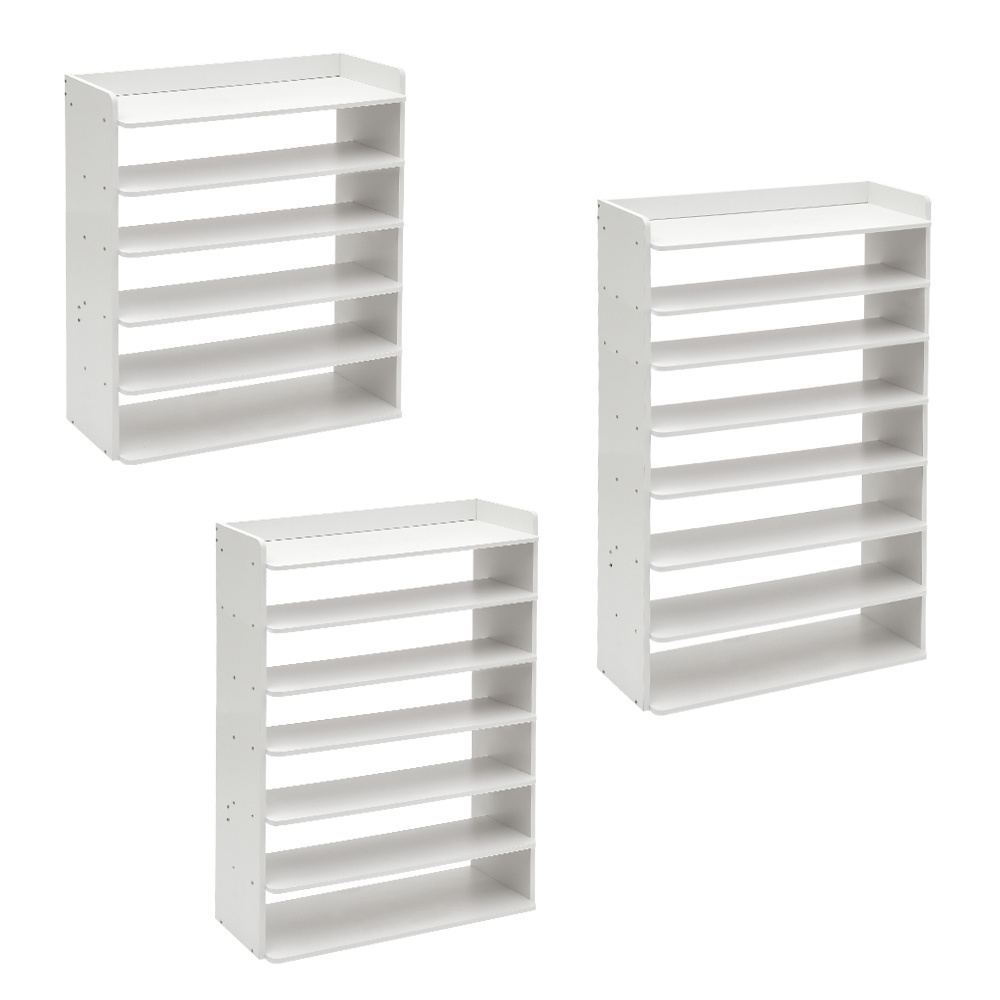 [Grounded Base] Designed to sit flush with the floor for maximum stability and to prevent dust buildup. [Open & Airy Shelving] The open design reduces odours and offers quick access to your shoes. [Slim Depth] Perfect for narrow spaces, this compact shoe rack fits neatly beside doors and in tight hallways.