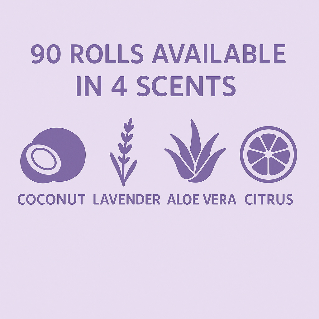 Get premium comfort and lasting quality with this 90-roll pack of 3-ply coconut scented toilet paper, designed for maximum softness, strength, and absorbency. It smells divine! Each roll contains 150 sheets, offering excellent value for money without sacrificing performance. Whether you’re stocking up for your home, office, or business, this bulk pack ensures you never run out of essentials. Why Choose Our 3-Ply Toilet Paper? This 3-ply toilet paper offers an extra layer of comfort and reliability. The three-ply design is stronger and thicker than standard 2-ply options, providing enhanced durability and absorbency. Whether you’re using it at home or in a workplace, this toilet paper is the go-to choice for those who demand both luxury and practicality. Perfect for Homes, Offices, & Businesses. Great for any setting, this bulk pack is ideal for busy homes, small offices, or hospitality businesses. With 90 rolls, you'll enjoy a long-lasting supply of premium-quality toilet paper, so you can focus on more important things!