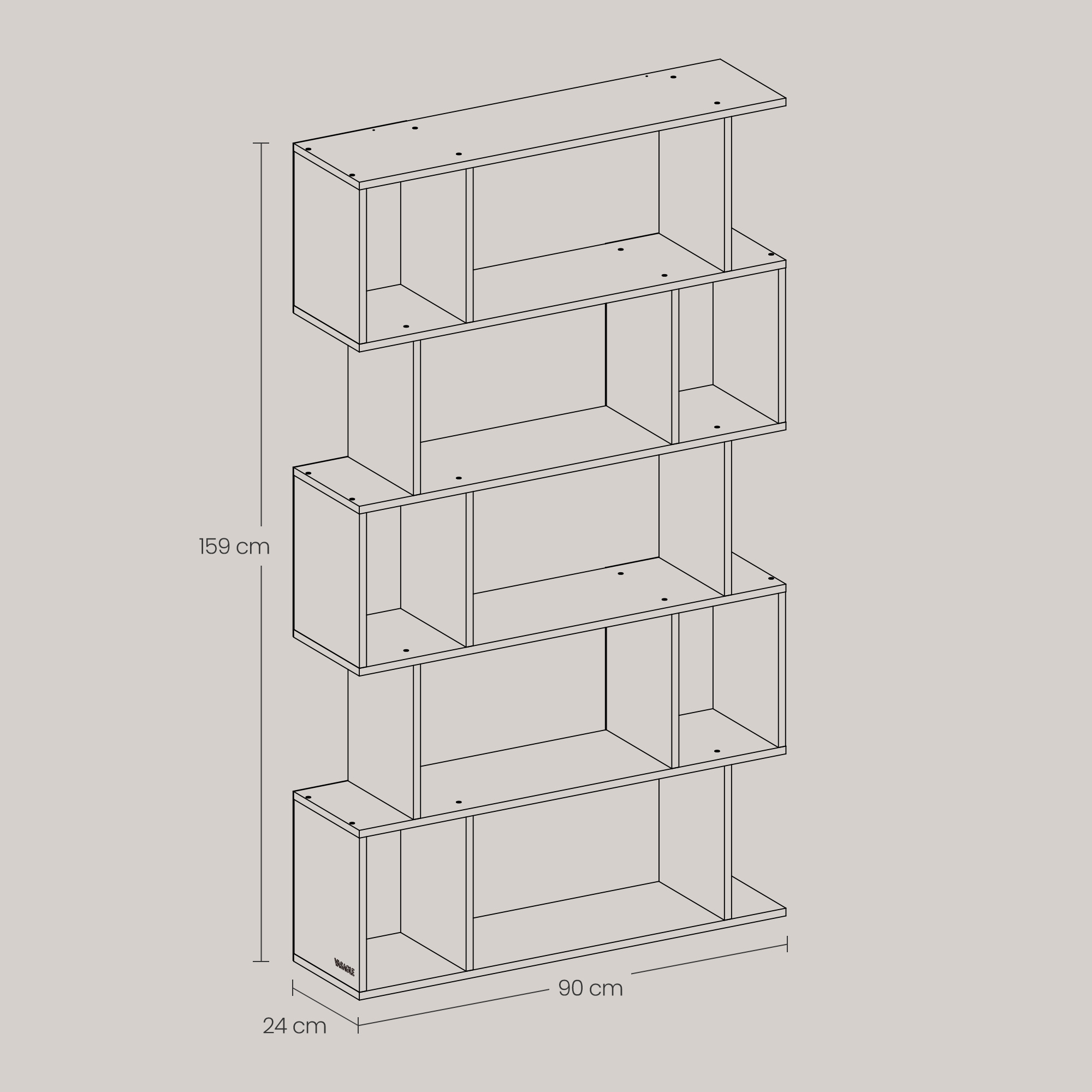 · Spacious Storage: This 5-tier bookcase, measuring 24 x 90 x 159 cm, is perfect for your everyday storage needs. Each tier is divided into 3 sections, allowing you to neatly store books, magazines, plants, and other items