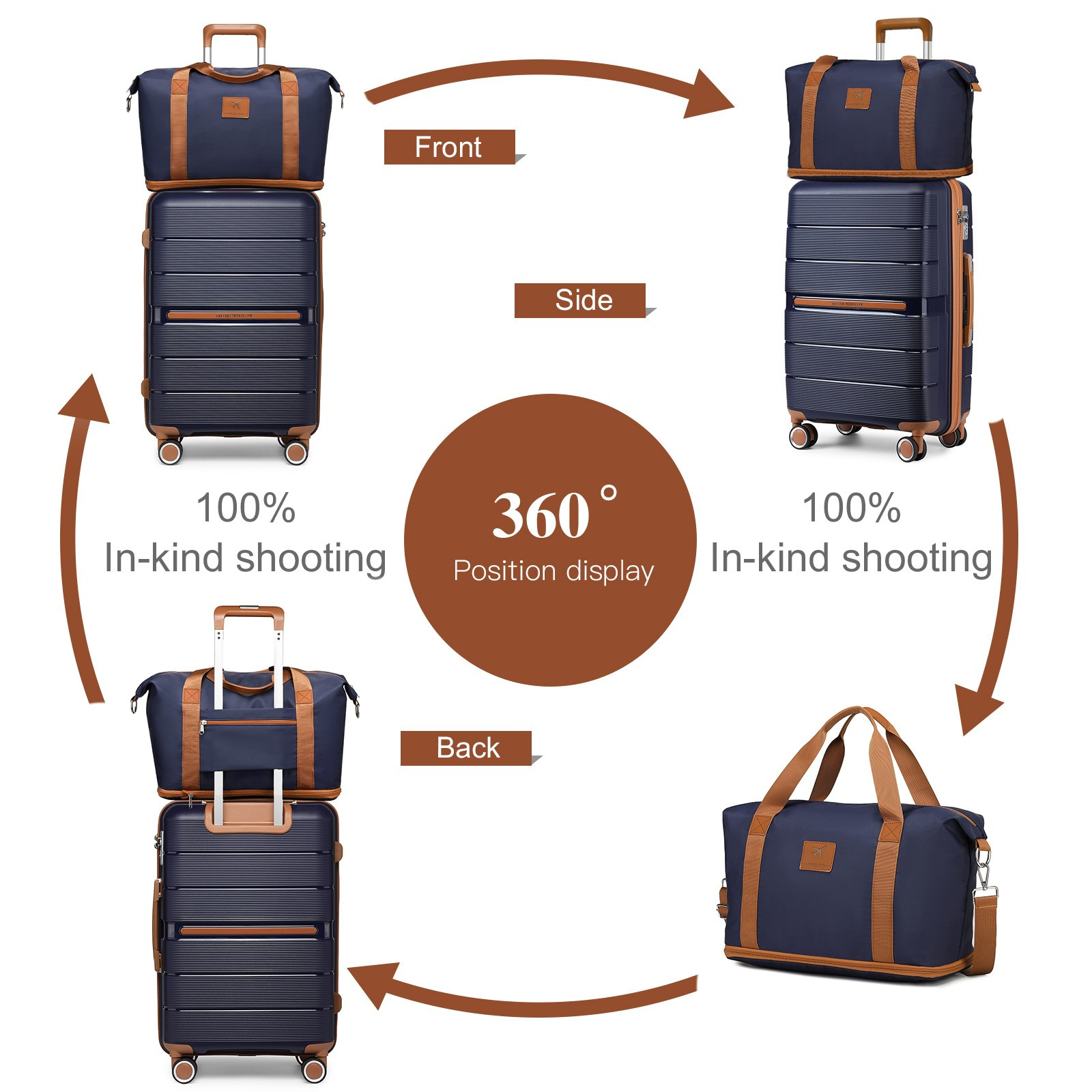 Features: This travel set is packed with amazing features! It comes with a durable hard - shell suitcase, a super versatile duffle bag, and a practical makeup bag. The suitcase is a traveler's dream, designed for seamless travel. It has four 360 - degree swivel wheels that glide smoothly, making it a breeze to move around. The retractable, easy - grip telescopic handle can be adjusted to multiple heights, ensuring maximum comfort for users of all statures. Security is a top priority, and this set delivers. There's a fixed 3 - dial TSA combination lock that provides enhanced security. It allows airport security to conduct inspections without causing any damage to your luggage, giving you peace of mind during your journey. For added convenience, the suitcase is equipped with dual handles, making it easy to lift when needed. Plus, it has plastic feet that ensure stable resting, whether you're at the airport or in your hotel room. Inside the suitcase, you'll find a spacious main compartment. It's secured with Nylon straps to keep your belongings in place, and there's also a zippered section and two mesh zip pockets. These pockets are perfect for organizing smaller items like toiletries, electronics, and accessories. The travel set also includes a highly versatile, expandable tote bag. It's designed with multiple carrying options, so you can carry it the way that's most comfortable for you. The tote bag has a roomy compartment with special wet - and - dry pockets, which are great for separating damp items from dry ones. There are also additional pockets to help you pack in an organized and secure manner. To top it all off, there's a discreet back pocket that doubles as a smart sleeve. This makes it easy to attach the tote bag to your suitcase handle for convenient transportation. And don't forget the matching accessory pouch, which is perfect for storing your essentials like keys, wallets, and passports.