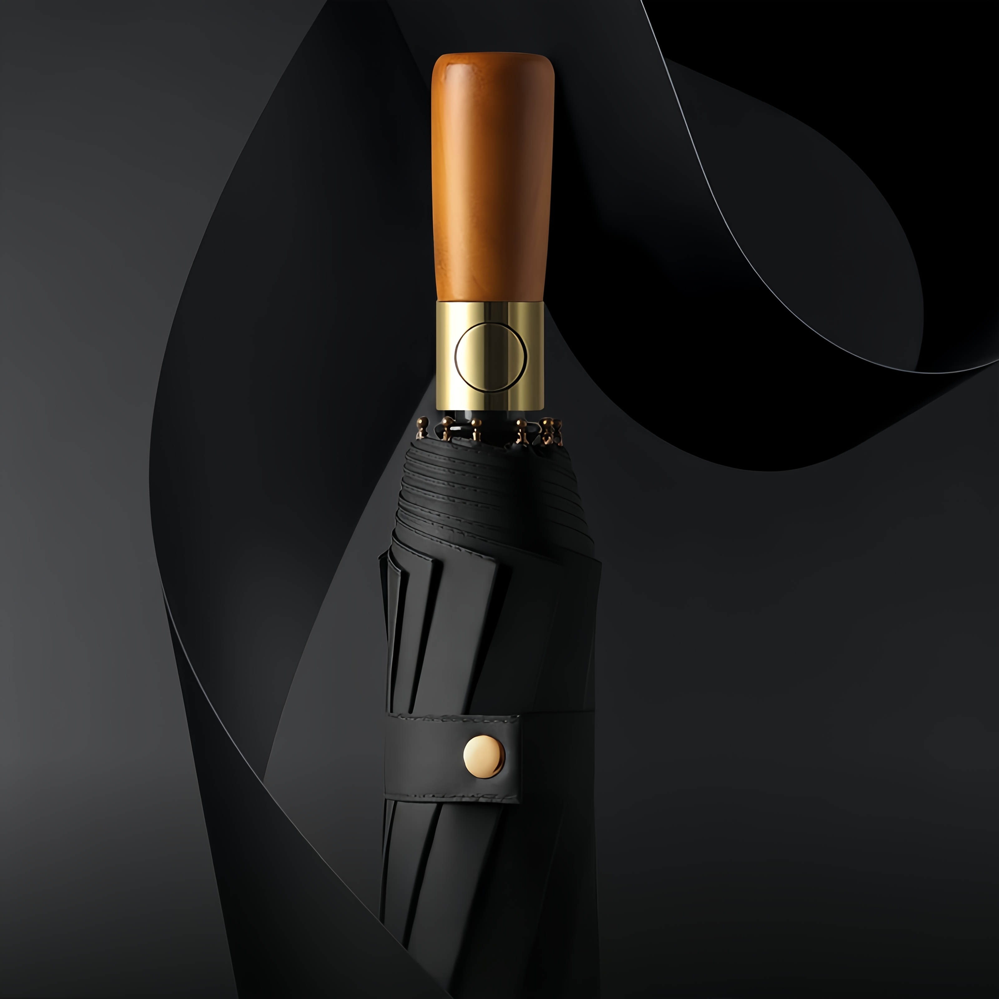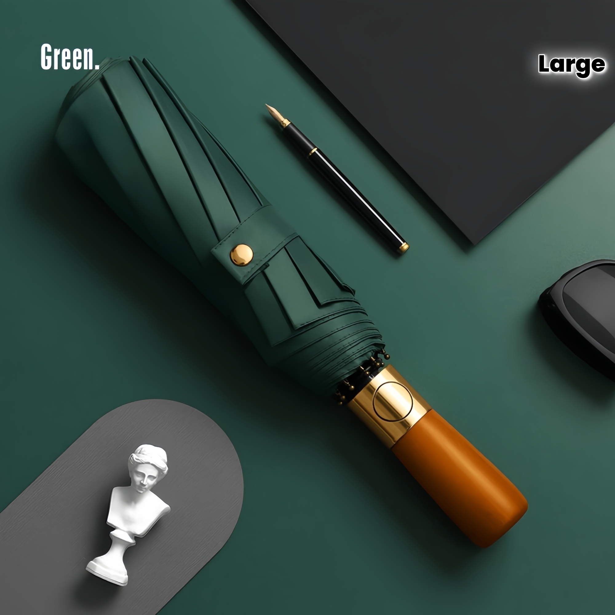 Business Premium Auto Open/Close 2-Person Umbrella – Large Windproof Double Fiberglass Frame, Wooden Handle, UPF 50+ Folding Travel Umbrella for Men & Women