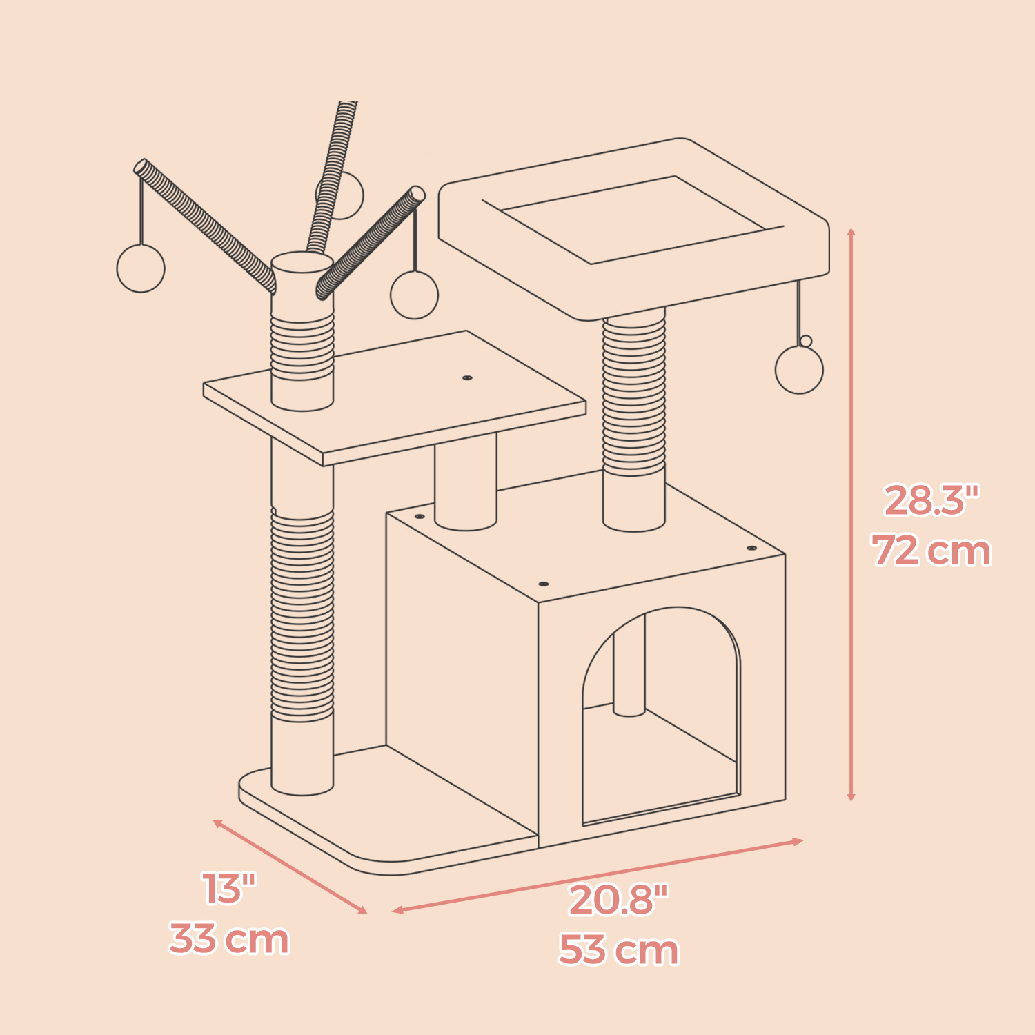 · Comfort All Around: Covered in soft material, the scratching tree offers a cosy cave and perch, creating a plush paradise for your cat