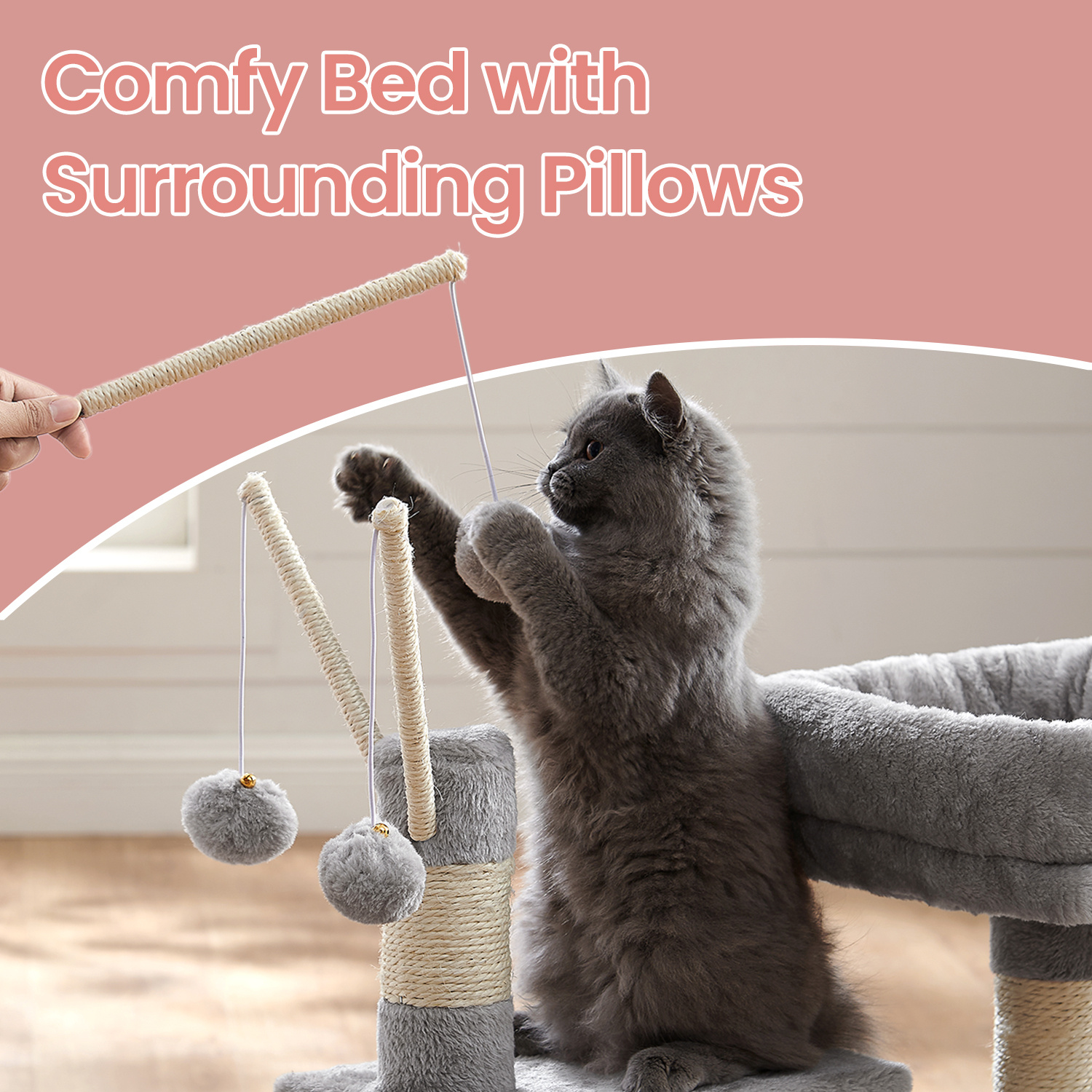 · Luxurious Scratching Tree: Provides a perfect spot for your cat to play and relax, keeping them entertained even when you're away