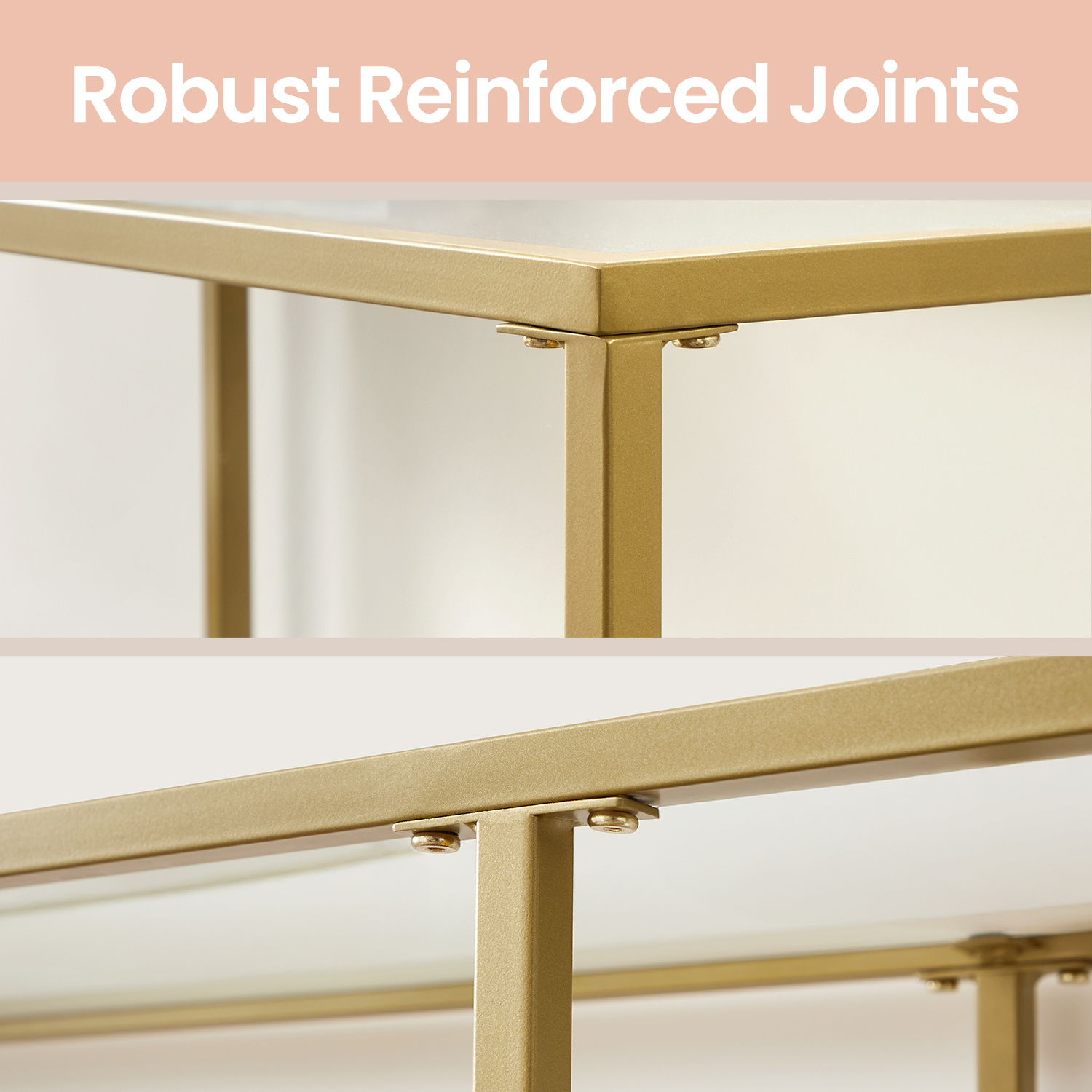 · Sturdy Construction: Each 5mm thick tempered glass shelf sits gracefully on the steel frame of this console table, providing robust support for up to 20 kg of plants, decorations, books, and more