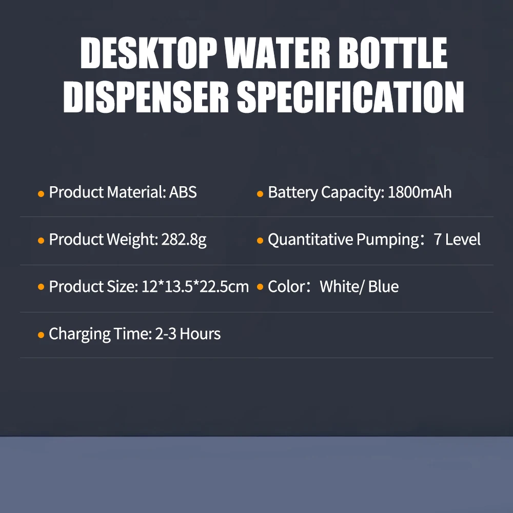 Quantitative Pumping with 7 Levels: Water dispenser has 7 water outlet options, including 100ml, 200ml, 300ml, 500ml, 700ml, 1000ml and unlimited water volume mode. Button of smart water dispenser can select required water volume. Water desk dispenser can meet different drinking water needs. Continuous pumping function of water dispenser can satisfy lots of water users, allowing users to quickly draw water. In different scenes water dispensers can provide convenient drinking water service.