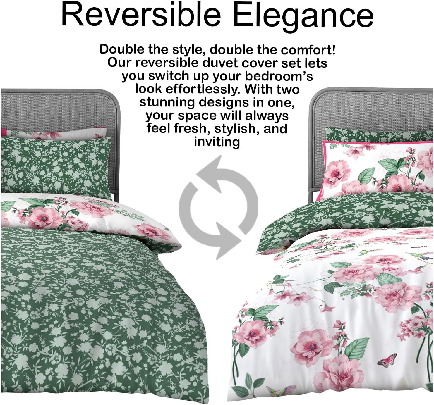 · Reversible Floral Pattern: Refresh your bedroom style easily with the reversible design of this duvet cover set. Featuring two beautifully coordinated floral patterns, you can quickly change the look of your bed to match your mood or decor. A simple flip gives you versatility and variety without needing an extra cover.
