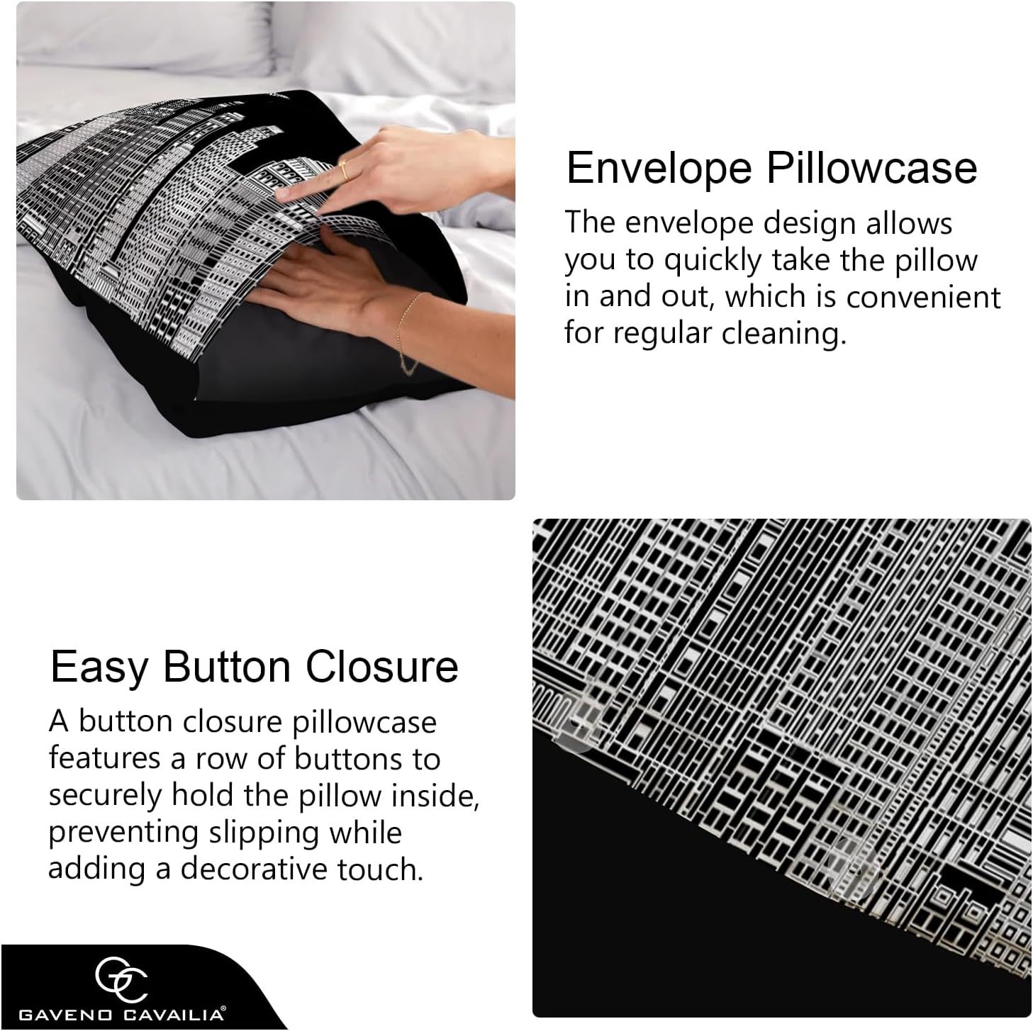 · Reversible City Skyline Design: Featuring an iconic city skyline design, this duvet cover set is reversible, offering two striking looks in one. The detailed skyline on a black background creates a bold, urban aesthetic, while the reverse side provides a sleek, minimalistic option.
