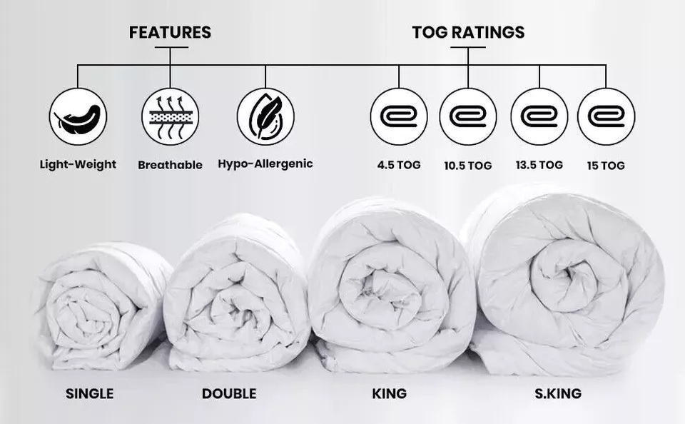· All-Season Comfort: Designed with 4.5, 10.5, 13.5 & 15 Tog options, this duvet provides year-round comfort, keeping you cool and breathable in summer and warm and cozy in winter. Perfect for adjusting your sleep environment to every season.
