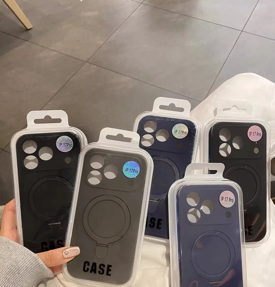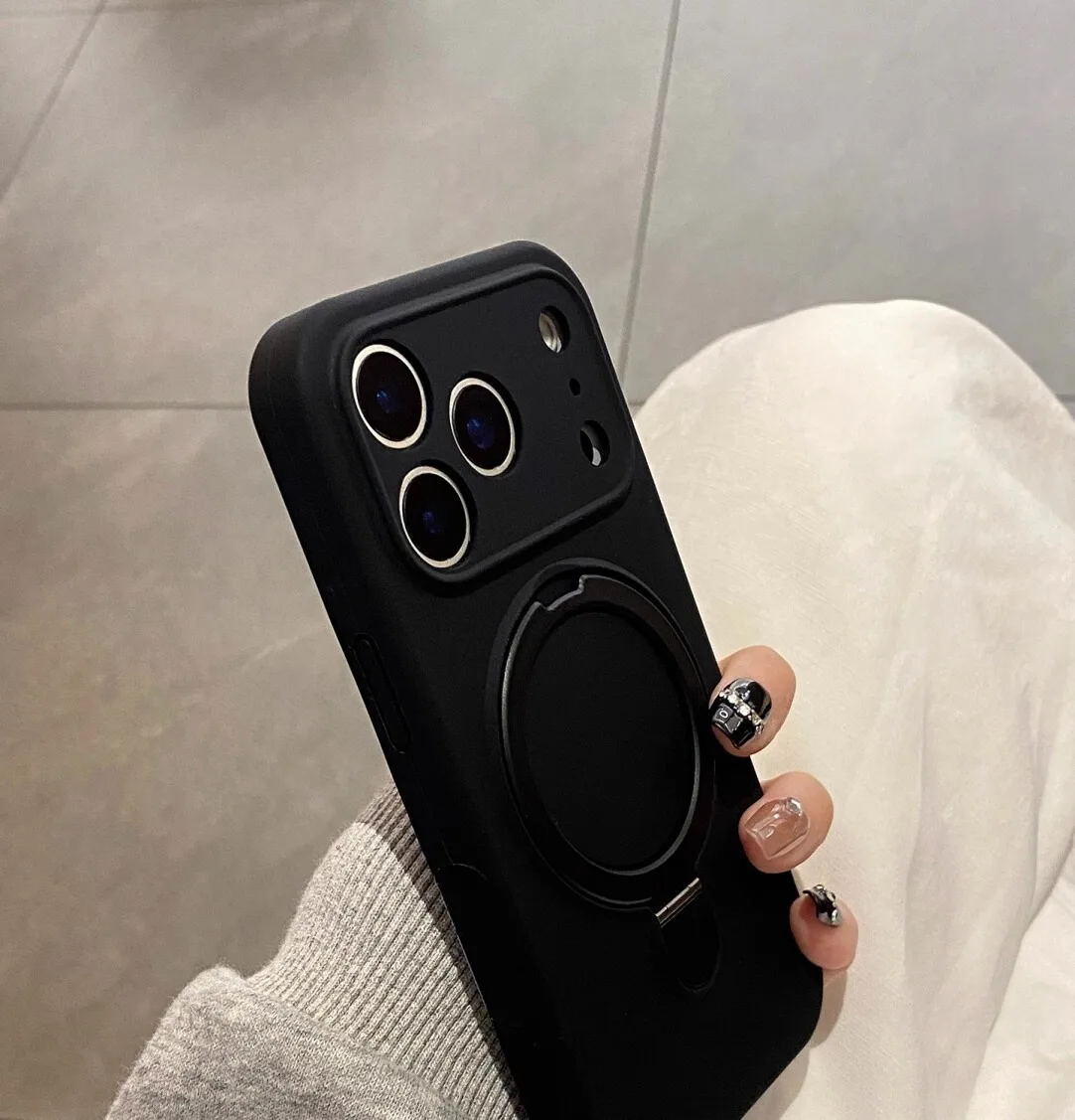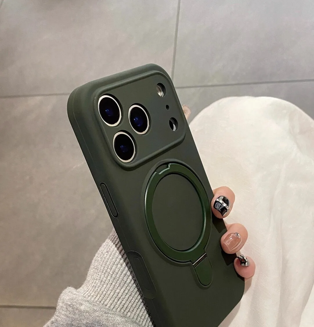 "Luxury Magnetic Liquid Silicone Phone Case for iPhone 12–17 Series (Pro/Pro Max/Plus/Air) – MagSafe Holder Stand Soft Cover"