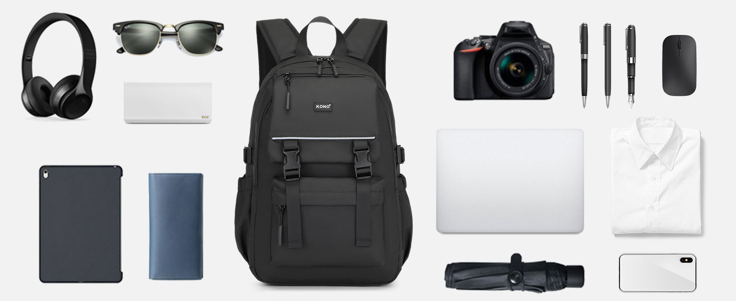 Fits 15.6" laptops in the padded main compartment + 2 elastic side pockets for bottles/umbrellas. Luggage strap attaches to cabin bags for travel convenience.Secure 15.6" Laptop Protection