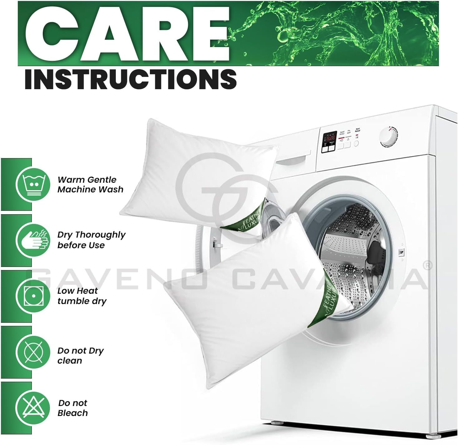 · Easy to Clean: Our goose feather pillows are machine washable, allowing for hassle-free cleaning and maintenance. Simply wash on a gentle cycle with mild detergent and tumble dry on low heat to keep your pillows fresh and fluffy.