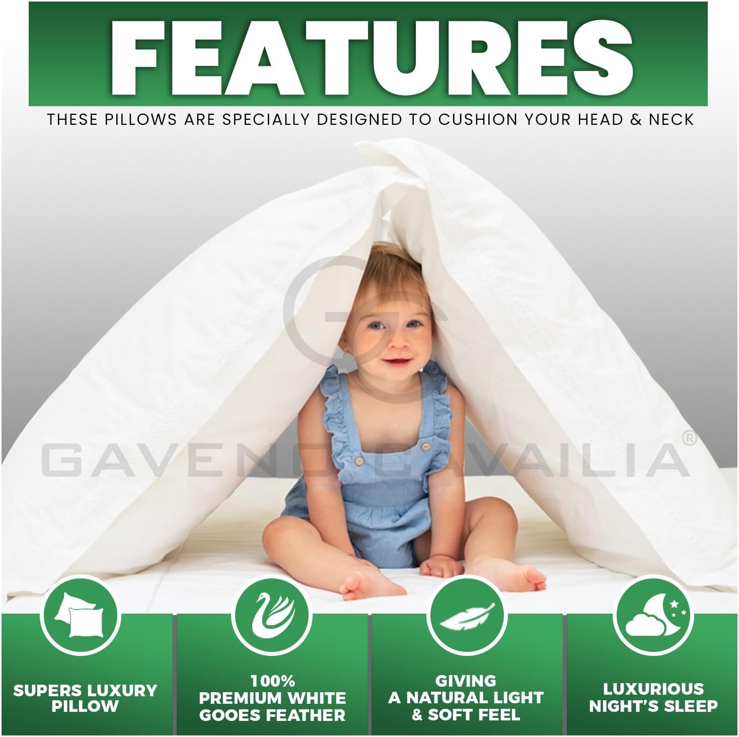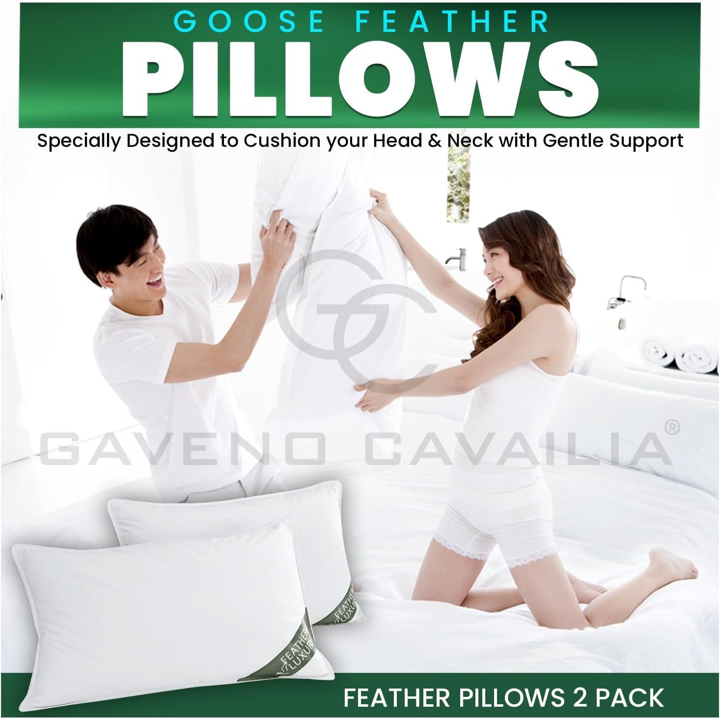 · Premium Goose Feather Filling: Crafted with 100% high-quality white goose feathers for a naturally soft and breathable feel. These pillows provide plush comfort while maintaining reliable support, helping you wake up refreshed and free from neck or shoulder discomfort.