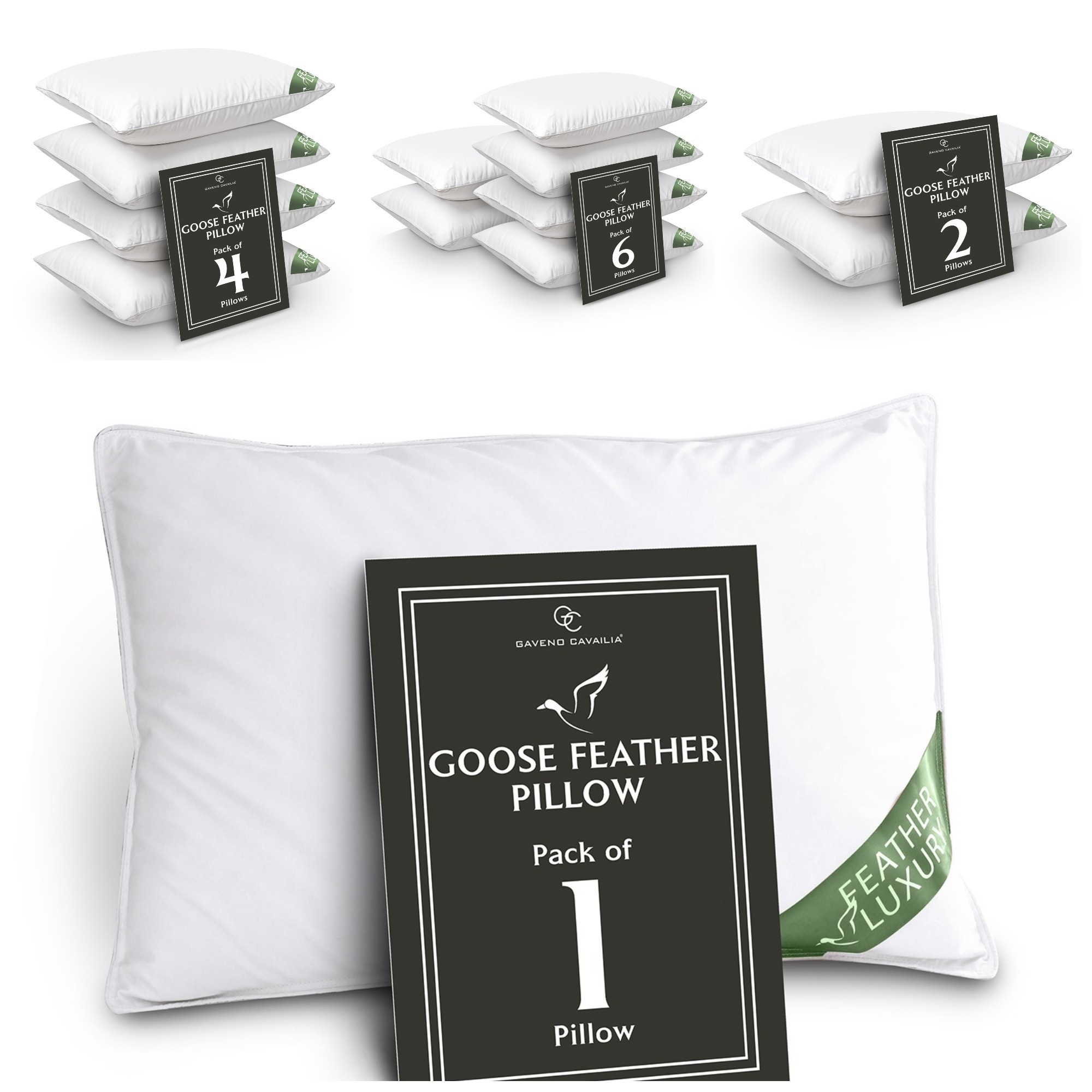 Upgrade your sleep with our Multi-Pack Goose Feather Pillows, designed to provide exceptional comfort and long-lasting support night after night. Filled with premium-quality white goose feathers, these pillows are soft, lightweight, and naturally breathable, ensuring you stay comfortable in all seasons. Perfect for all sleeping positions, they gently contour to your head and neck for optimal support. Each pillow is finished with a durable, 100% polyester cover that feels smooth against the skin while preventing feathers from escaping. Available in convenient packs of 1, 2, 4, or 6, making them ideal for personal use, guest rooms, or family households. Enjoy a restful sleep experience with a trusted UK brand, offering fast local dispatch and easy-care maintenance. Machine washable for your convenience.