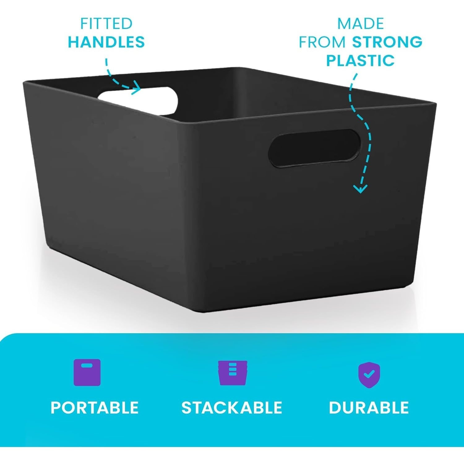 · Built for Daily Use – Made from sturdy plastic with strong handles and a stackable design for space-saving, practical organisation throughout the home.