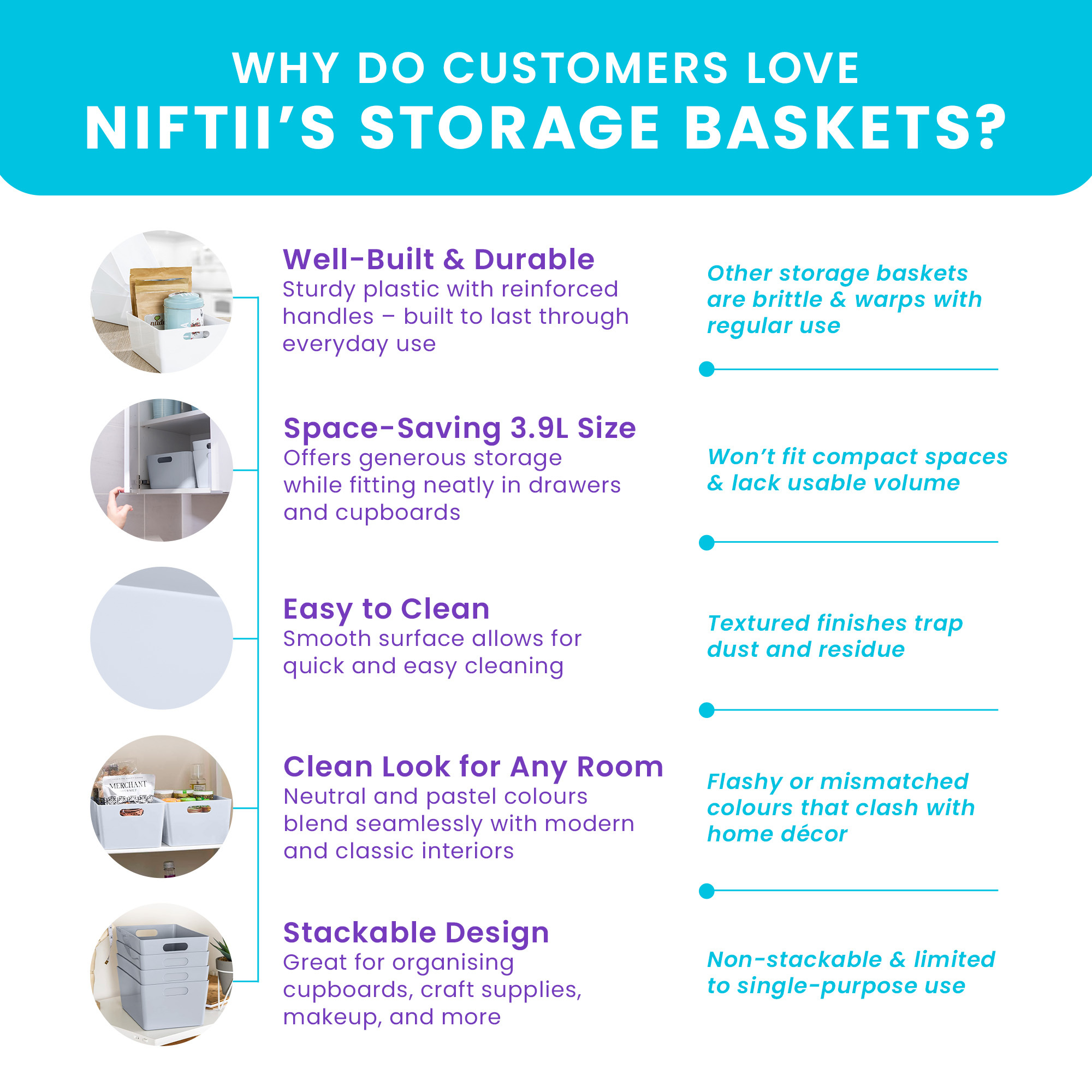 · Organised Elegance for Every Room – Declutter kitchens, bathrooms, and utility spaces with these stylish and practical 3.9L storage baskets.