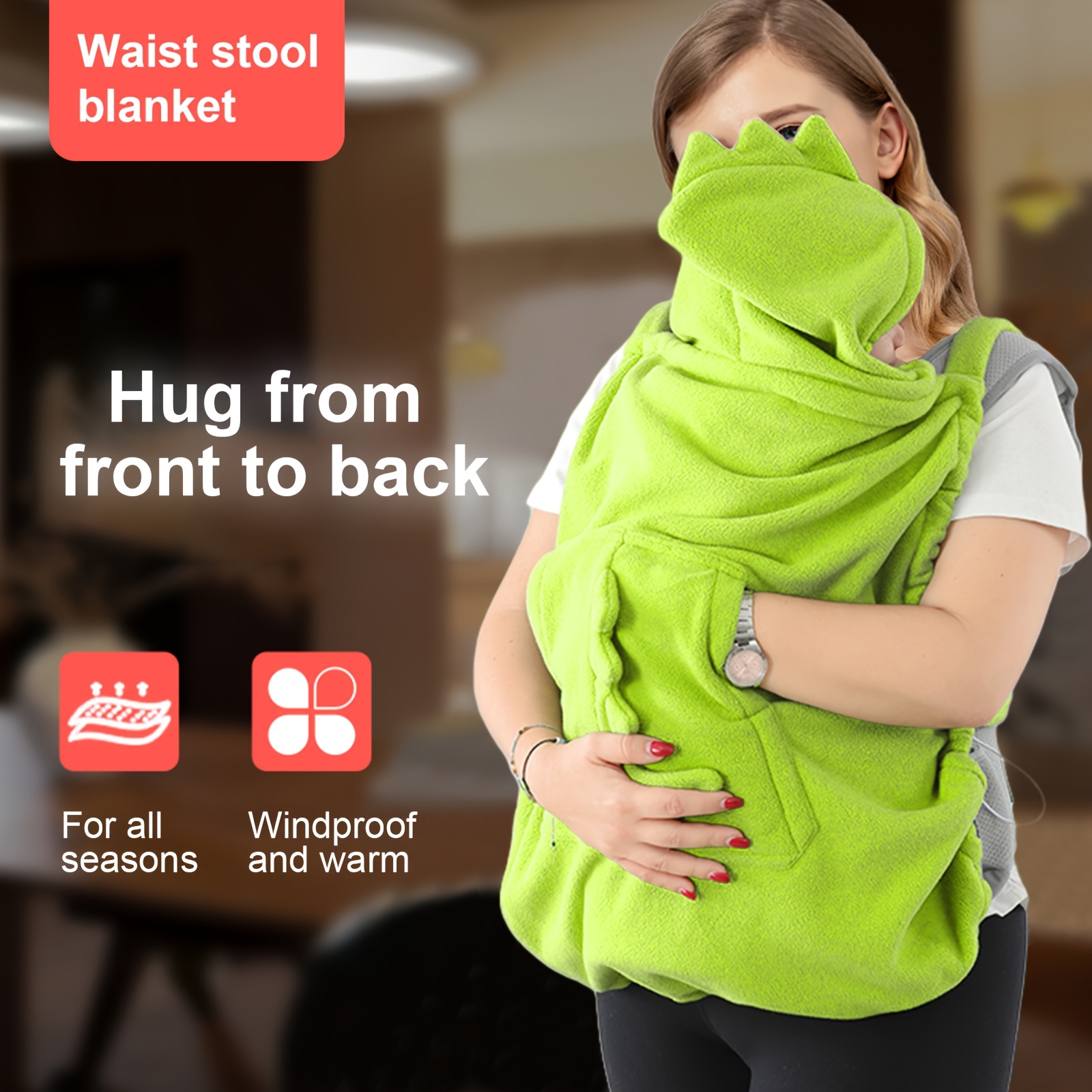 One Cartoon Dinosaur Children's Waist Stool Warm Cape, Multifunctional Front-Carry Windproof Cloak - Suitable for Home and Outdoor Use as Cold Protection Blanket