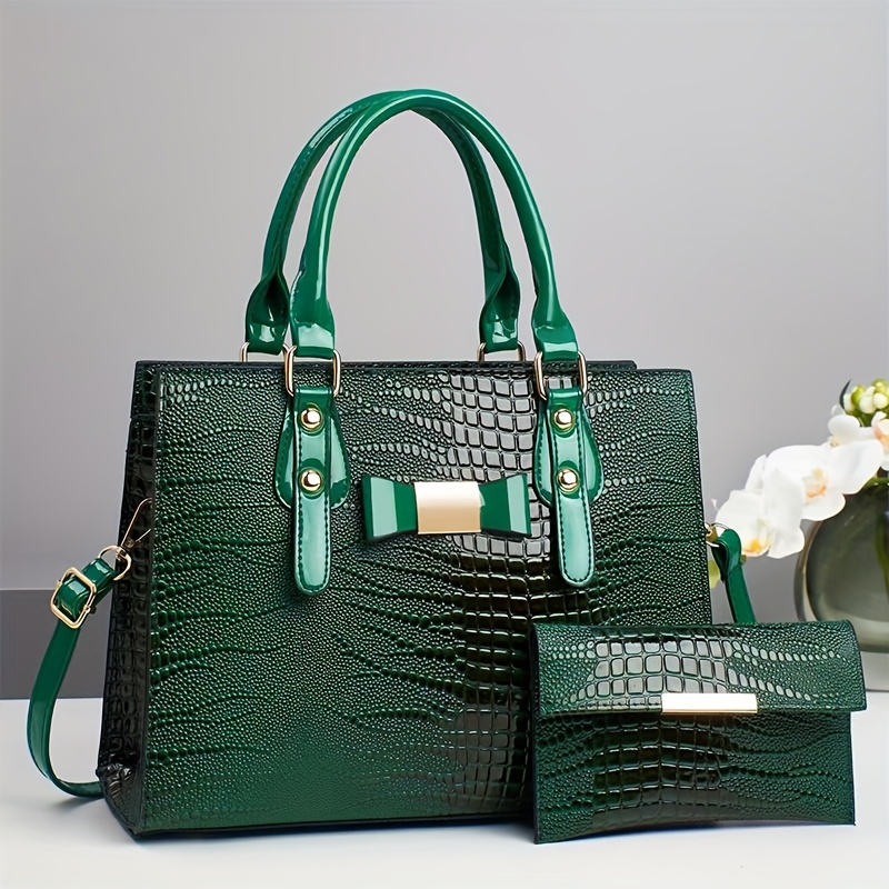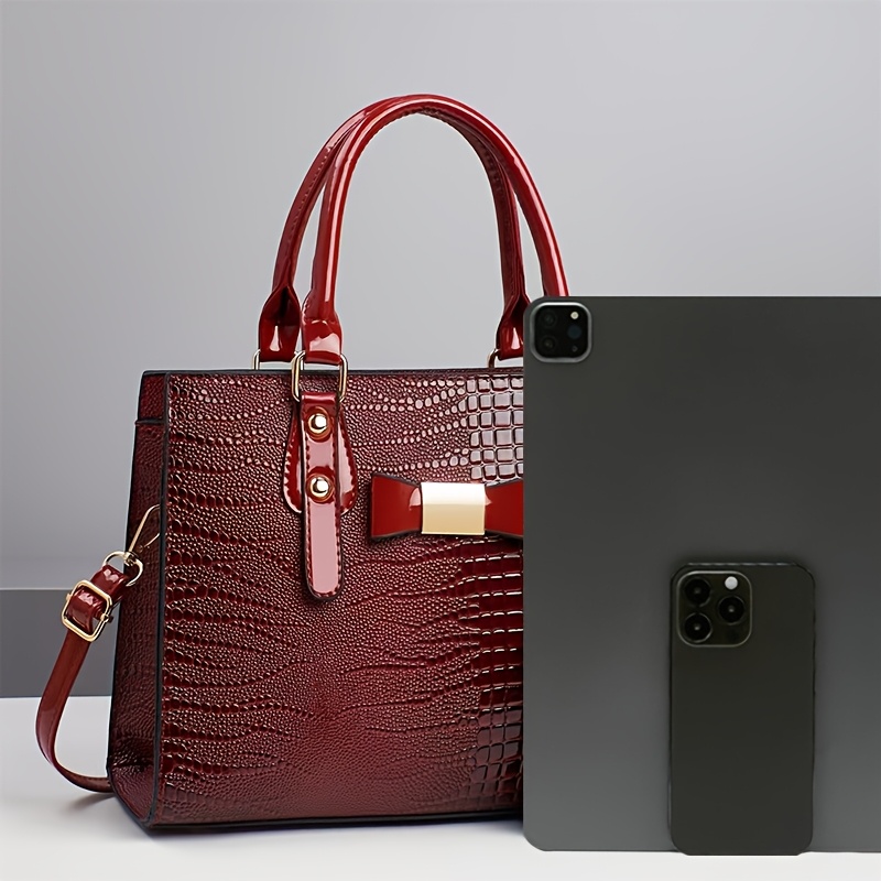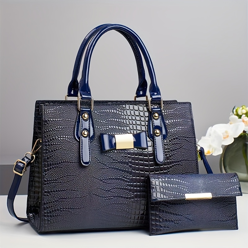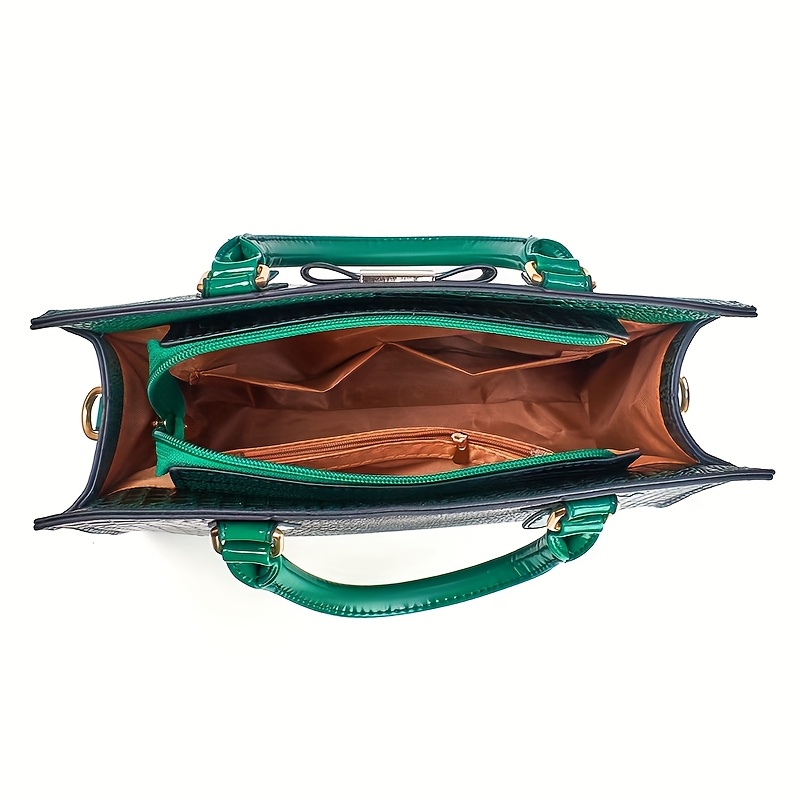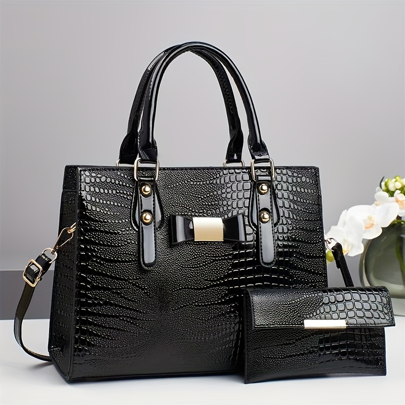 Premium Women's Handbag Set - Elegant Black Crocodile-Textured Tote with Removable Strap, Large Capacity, Golden-Tone Hardware, and Detachable Shoulder Bag for Work, Travel, or Gifts, Travel Handbag | Elegant Tote Bag | Durab