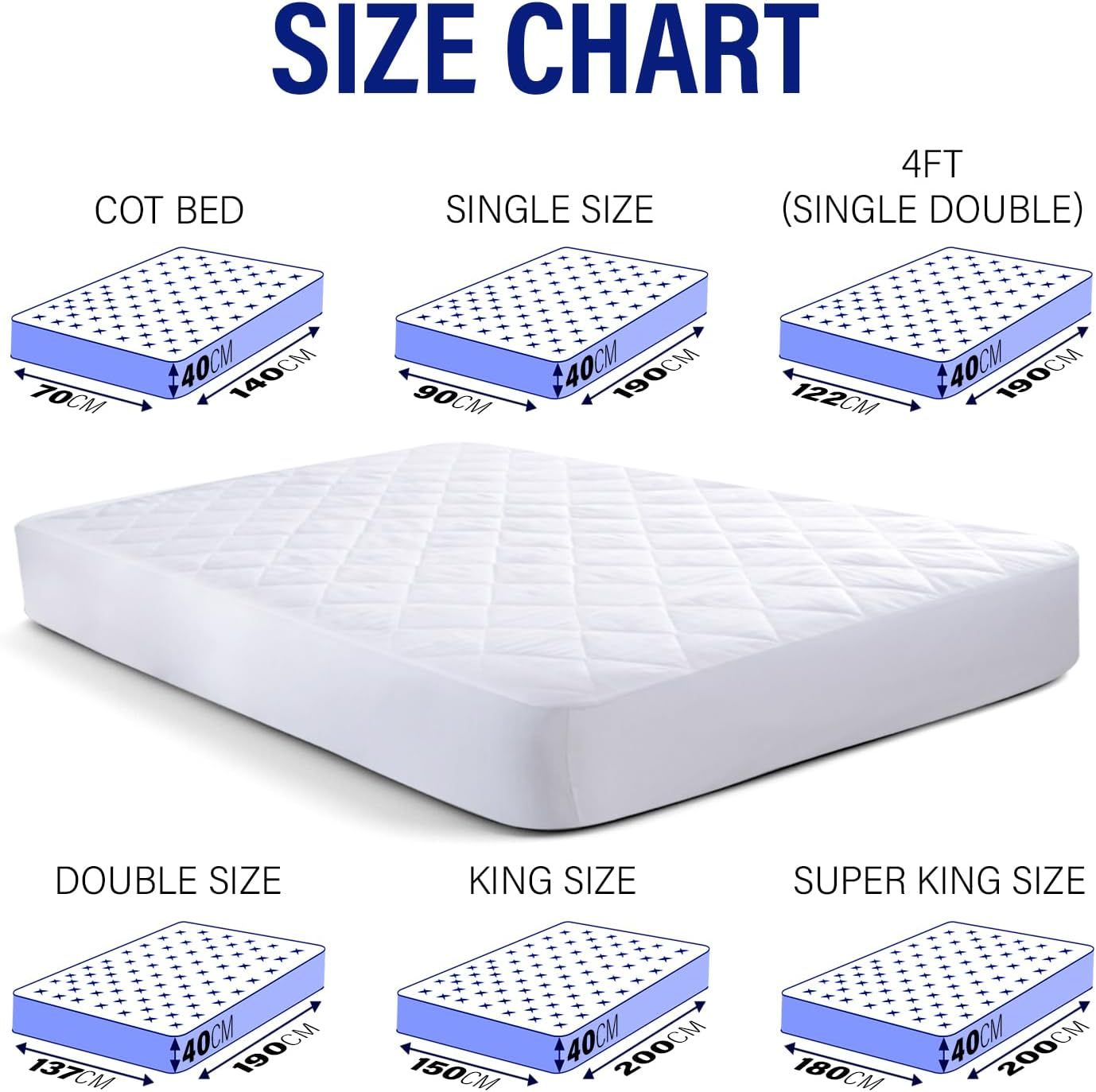 · Machine Washable & Durable: Built for everyday use, this mattress protector is machine washable at 40°C and tumble-dry friendly. Reinforced stitching keeps the filling evenly spread, ensuring softness, protection and durability after every wash.