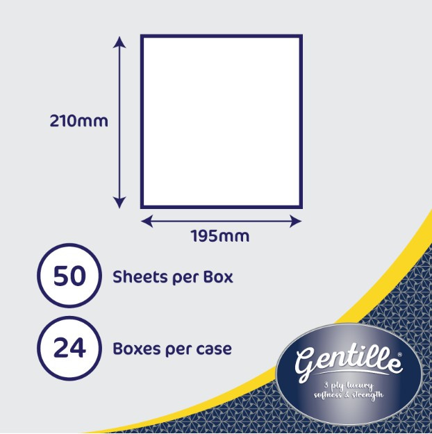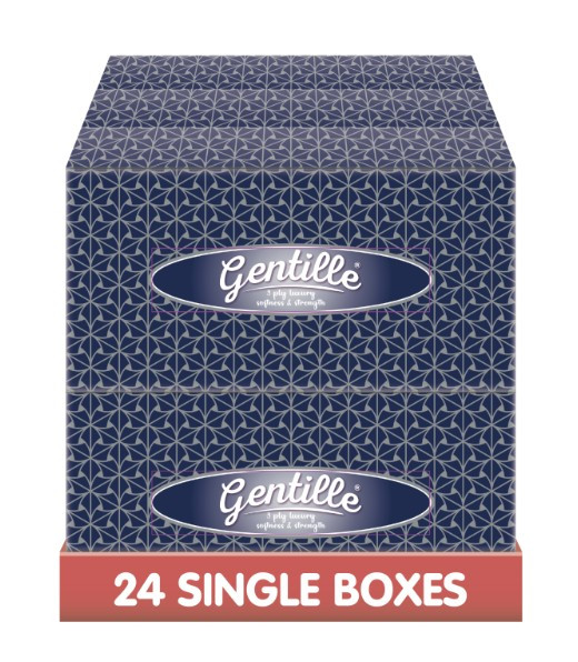 Introducing Gentille 3-Ply Luxury Facial Tissues – a refined choice that balances softness and strength for everyday use. Each 3-ply sheet (210mm x 195mm) offers a comfortable, absorbent experience that’s ideal for both home and professional settings. The 24-pack bulk option includes 1,680 sheets, ensuring you're always well stocked. Why Choose Gentille? Reliable 3-Ply Quality – Thicker and more absorbent than standard 2-ply tissues Gentle on Skin – Soft texture suitable for sensitive skin – Supporting local manufacturing and quality control Generous Sheet Size – 210mm x 195mm for better coverage Clean, Minimal Design – Stylish cube boxes that fit neatly into any space Key Features: 3-Ply Construction – Added thickness provides a more durable and comfortable tissue 24-Pack Bulk Value – 70 sheets per box, 1,680 sheets total Multi-Purpose Use – Ideal for daily use, makeup removal, and general hygiene Versatile Placement – Suitable for homes, clinics, offices, and hospitality environments About Gentille Luxury Tissues: Gentille offers a practical yet refined approach to daily care. The 3-ply tissue is designed to be soft enough for sensitive tasks while offering reliable strength for everyday needs. Whether you're stocking up for the family or enhancing guest comfort, Gentille adds a touch of quality to your space – without the fuss.