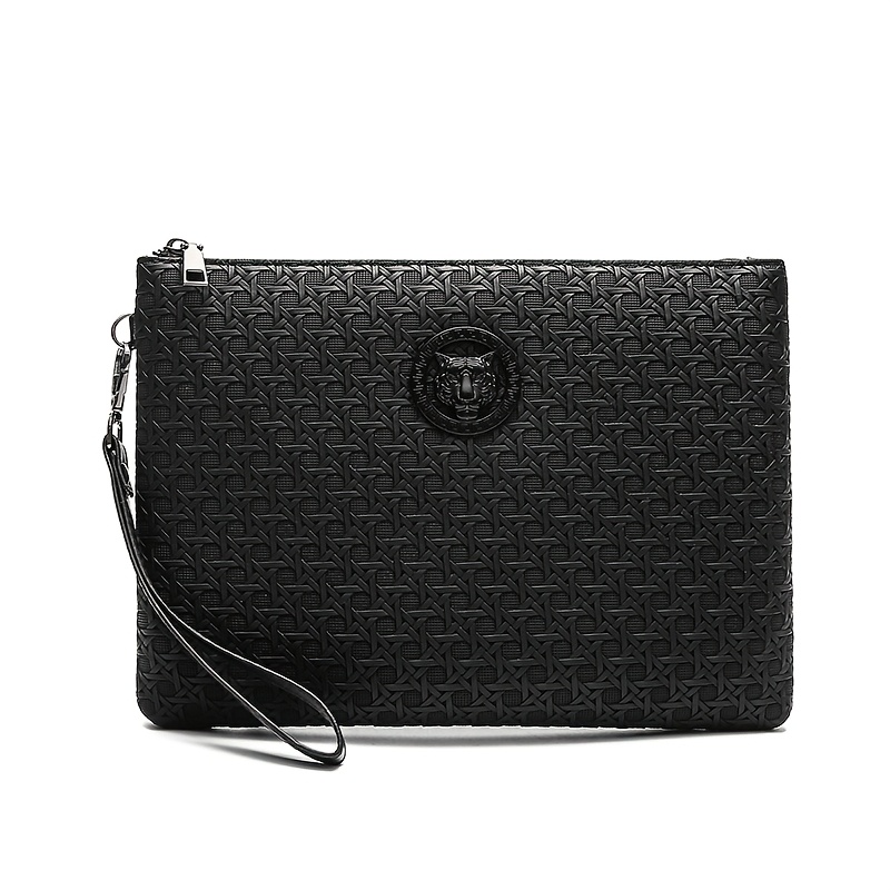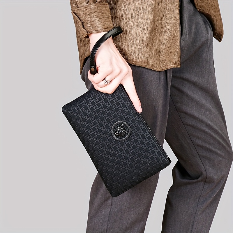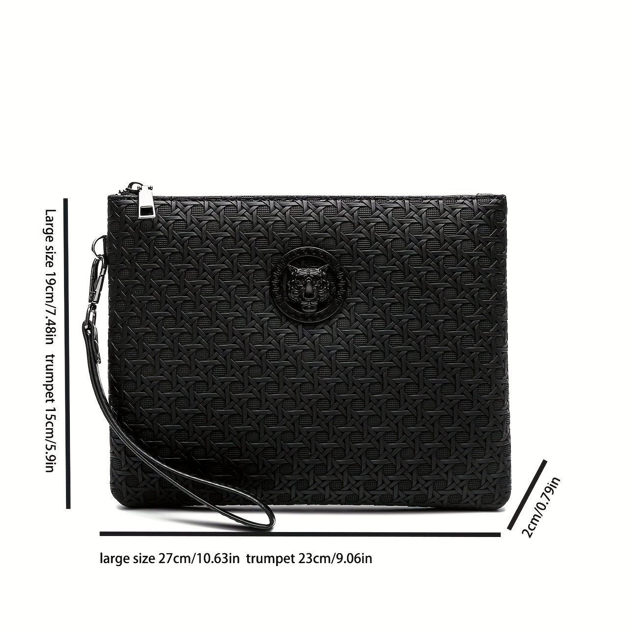 Sleek Black Handbag, Men's Fashion Top-Handle Envelope Clutch Bag | Large Capacity, Interchangeable Tape, Business Style, Black, Perfect for Daily Commute & Everyday Carry