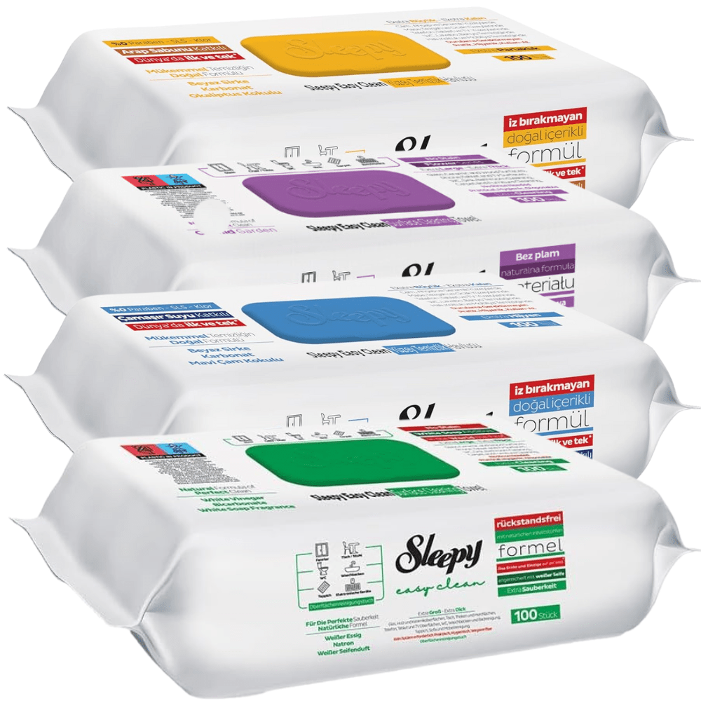 Experience effortless cleaning with the Sleepy Easy Clean Surface Wipes & Towels Mix, a complete 4-pack bundle designed for quick, effective, and hygienic surface cleaning. Each pack includes 100 sheets, giving you a total of 400 wipes for long-lasting freshness and convenience. Enjoy four refreshing scents in one bundle: White Soap Orchid Herbal Soap Blue Pine Perfect for kitchens, bathrooms, workspaces, and everyday messes, these wipes remove dirt, grease, and bacteria with ease—leaving every surface clean, fresh, and fragrant.