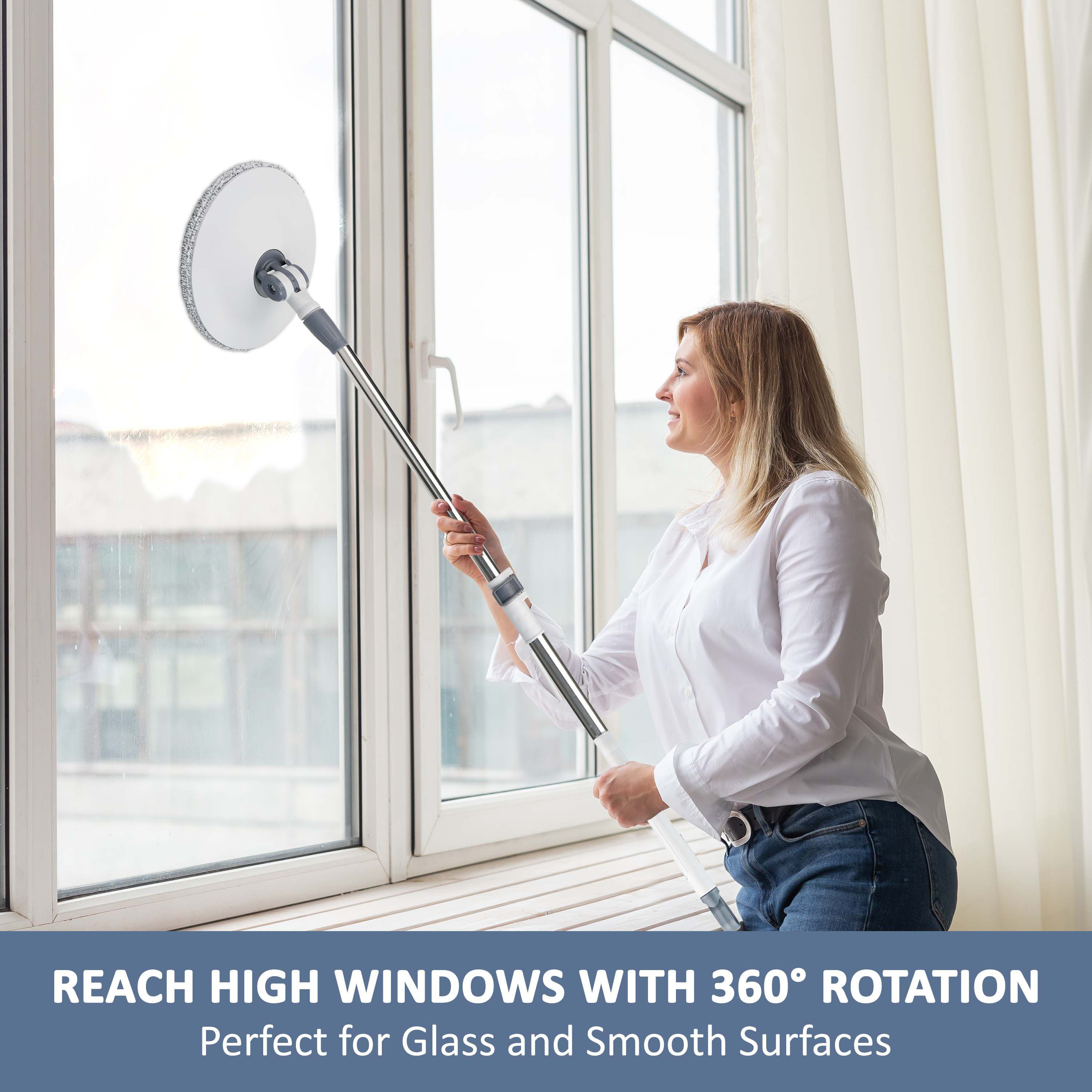 · {360° Rotating Mop Head}: Effortlessly clean hard-to-reach areas under furniture and corners with the flexible spin mop handle, designed for maximum maneuverability.
