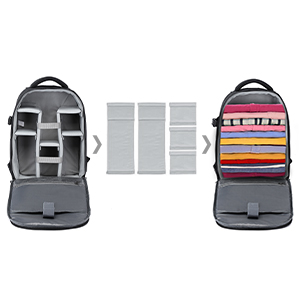 The removable padded dividers protect DSLR gear from impacts while allowing reorganization. Easily convert into a travel backpack or laptop bag by removing inserts.Professional-Grade Capacity